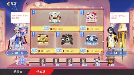 大人们可以在乐园的特卖场中选购联动礼盒及联动皮肤。每消费满一定数额的勾玉,还可获得返利哦~!