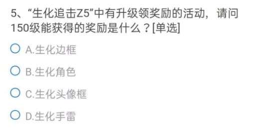 5、生化追击Z5中有升级领奖励的活动请问150级能获得的奖励是什么?