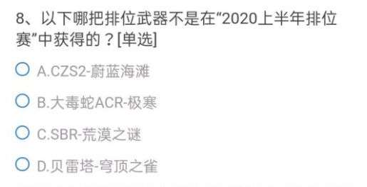 8、以下哪把排位武器不是在2020上半年排位赛中获得的?
