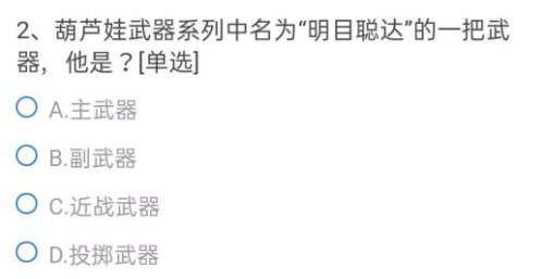 2、CF手游葫芦娃武器系列中名为明目聪达的一把武器他是?