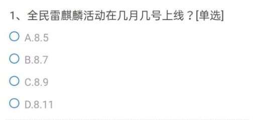 1、CF手游全民雷麒麟活动在几月几号上线?