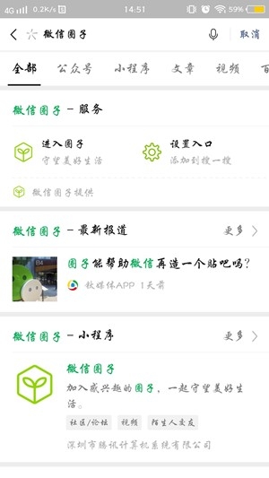 我们只要在微信的搜索框中,搜索“微信圈子”就可以了,点击进入就可以了。