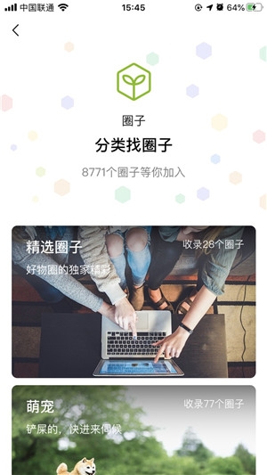 在进入了微信圈子后,还可以根据分类找圈子,包括精选圈子、阅读、生活、运动、游戏、自然、母婴、科技、爱好、娱乐、美食等,在这些圈子中,里面还有各种具体的俱乐部圈子,我们可以在里面交友并分享美好的生活。