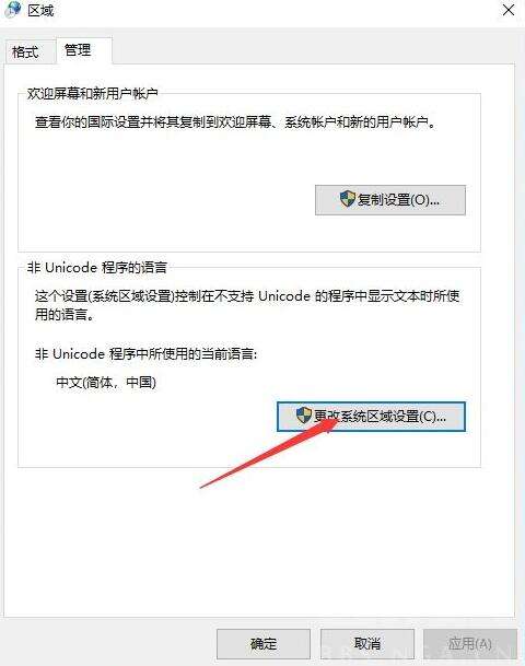 2、在管理中点击“更改系统区域设置”。