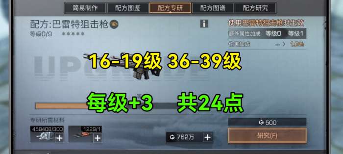 除此以外,在配方专研到,16-19级、36-39级时,每级可提升3点精准值,总共24点。