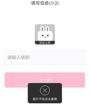 2、选择好注册方式之后会进入个人昵称和图片上传界面,昵称可以随意起一个,头像上传必须为照片才可以上传成功,网络头像等图片可能导致上传失败;