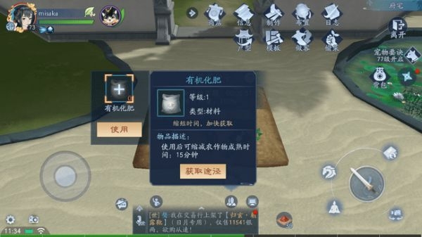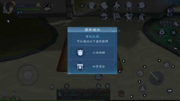 4、我们种下的作物想要快速成熟可以撒肥,肥料可以从江湖跑酷、四季商会获得。如果种错作物或者不想要了,也可以铲除作物,移除后的作物会返回种子,但是不会收获任何东西,如果作物已经施肥过,那么就不要去产出作物。