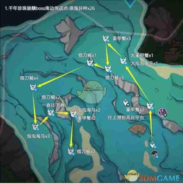 路线4:信封单学院南边、千年珍珠骏麟boss