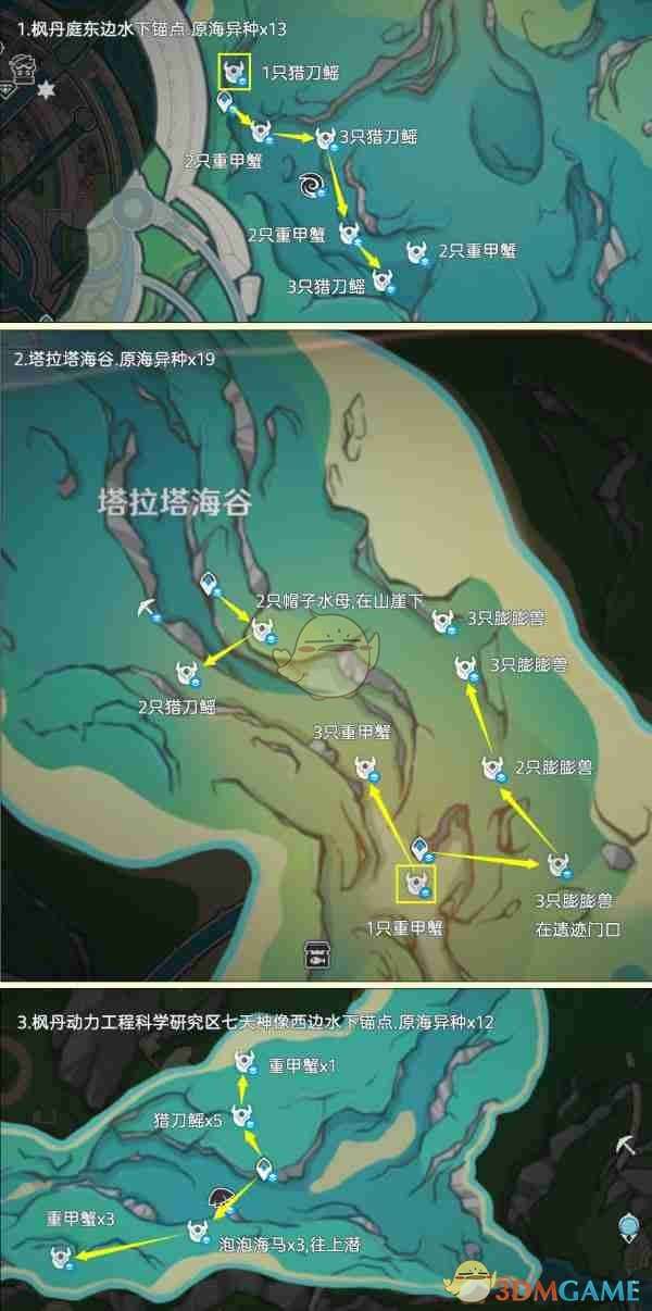 路线7:枫丹廷东边水下锚点、塔拉塔海谷、枫原动力工程科学研究区七天神像