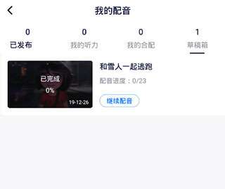 3、如果你在合配结束后保存到了本地,还可以在我的配音中找到“我的合配”与“草稿箱”,选择你想要删除的合配视频进行删除即可,如下图所示: