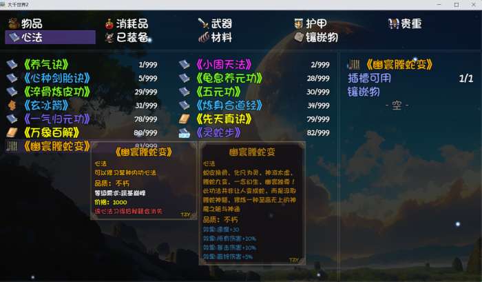 大千世界2,一款像素风开放世界角色扮演游戏,以高自由度、多元玩法与创新设定为核心亮点,打破传统 RPG 束缚,为玩家带来沉浸式冒险体验,游戏打造无缝连接的开放世界,下面小编给大家带来了大千世界2最强心法获取指南,大家可参考一下!