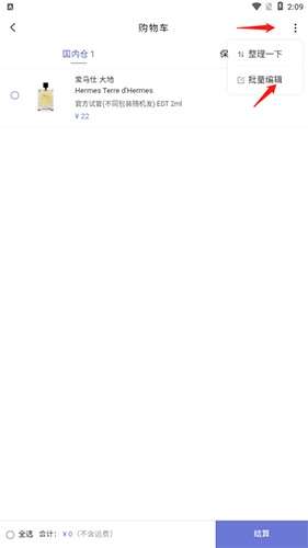 2、进入购物车页面,点击“更多”按钮,然后点击“批量编辑”选项。
