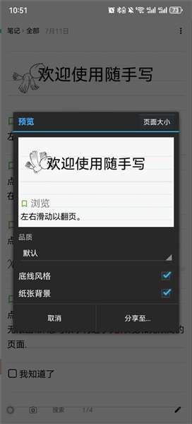 在随手写app中分享给好友,可先打开应用进入包含要分享内容的页面,点击右上角三点菜单按钮调出功能选项,在弹出功能栏中找到并点击“分享”按钮,之后从分享方式列表里选择微信、QQ等社交平台,按提示登录对应账号并选择好友,即可将笔记内容分享出去。