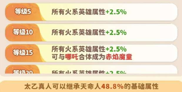 另外,哪吒和太乙真人的专属法宝很重要,对英雄的强度提升很大,满星的哪吒专属法宝效果为普攻时有50%概率提升自身200%攻速,持续2秒。
