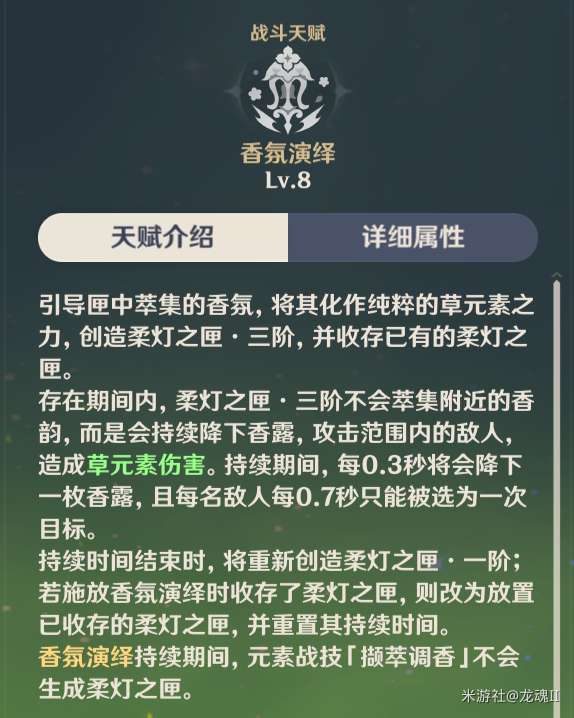 ③天赋相关:大招期间灯是被回收的,期间产生的香韵不会被回收触发天赋,在大招结束后会逐步回收香韵出发天赋,不会一次性回收完毕。