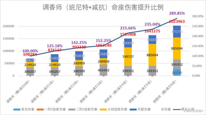 6命:6命的提升也还算可以,附魔普攻的部分能带来一定的伤害,还有多了的香韵带来的额外次数的天赋攻击。