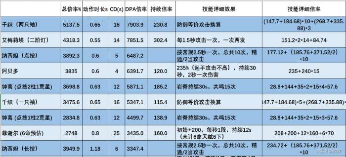 可以看到E技能直接伤害的占比在40%~50%左右,天赋占比在15%~20%左右,大招占比约在30%~40%左右。