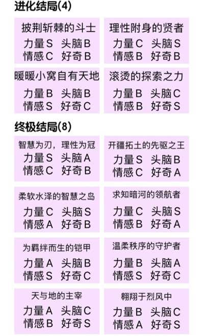 无限暖暖巨兽养成有哪些结局,巨兽养成系统包含了8个大类,共计35种结局。这些结局的达成,主要取决于力量、头脑、情感、好奇这四个属性的具体等级以及它们的总属性数值,系统里还设计有特殊的隐藏结局。下面为大家带来这些全部结局的介绍。