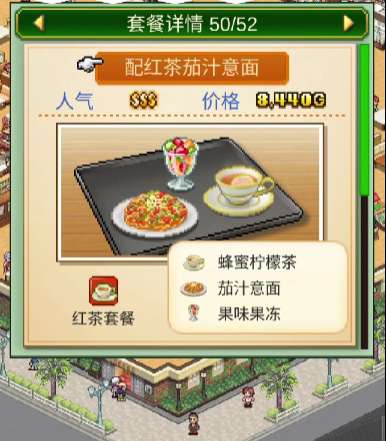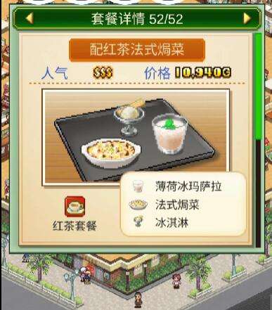 玩家在经营咖啡馆的时候,为了能够提升顾客的满意度,往往在选择套餐的时候,也需要根据顾客的需求,其中有部分顾客喜欢甜味,这时候可以选择甜味的饮品跟甜点,直接形成了统一的味觉。在饮品方面可以选择豆沙咖啡或者是热的柠檬汁,配菜方面的话,玩家可以选择红豆汤或者是水果芭菲,这些其实特别适合女性顾客,因为豆沙的咖啡具备浓郁的豆沙香味,再加上水果芭菲的清爽,这样的情况下能够形成互补。