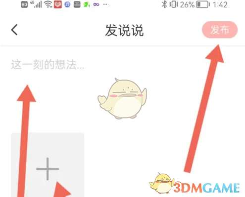 3、进入发说说界面,然后上传图片或视频,输入内容,点击【发布】。