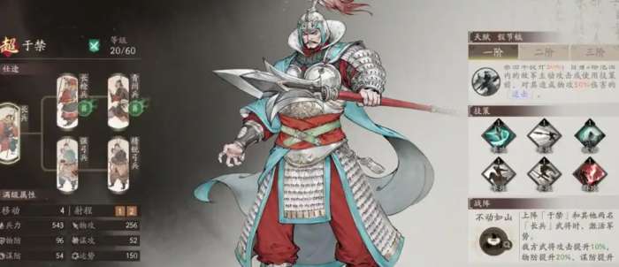 并且需要注意的是,于禁的军势需要另外两个长兵角色才能激活,这就需要玩家们抽取的时候考虑到自己的整体队伍的搭配,相比于张辽的泛用性以及直接输出的特性,于禁在PVE中可能会受到队友搭配的制约,但是在PVP战斗中,长兵队的反击以及追击往往能打乱敌人的节奏,尤其是在面对一些高输出敌人时,反击往往是最为关键的,所以如果你是PVP玩家,那么于禁绝对是值得你投资的一名武将,于禁的强度在T1,虽然在PVE中的表现一般,但是在PVP中还是有其一席之地的。