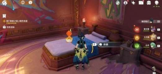 3、完成对话后,回到倦意之屋,点击床选择休息。