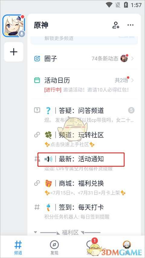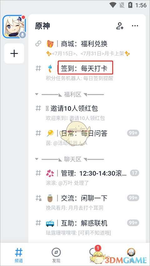 1、进入软件,选择关注的频道进行签到打卡可获得积分