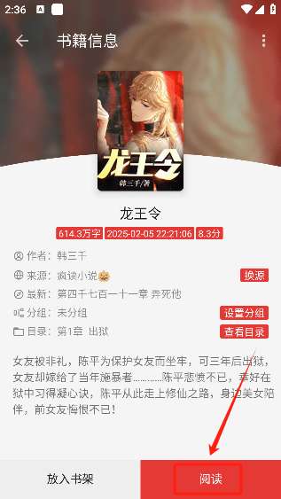 选择喜欢的小说就能够在页面了解相关的详情了,点击阅读即可快速进入到阅读页面