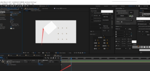 6、在特效面板调整翻页的中心点,打上关键帧;