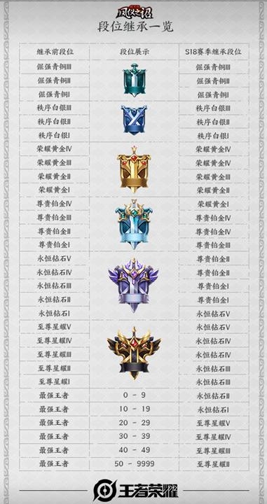 5、S18赛季段位继承,王者段位多继承到星耀2,低继承到钻石2,而其他段位,大多都是降低一个大段位。同时,S18赛季的赛季皮肤确定为弈星的混沌棋,同样是段位达到黄金,并取得十次胜利就可以免费获得,这款皮肤看起来还是不错的。