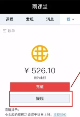 雨课堂软件中用户可以通过回答红包试题的方式获得红包,许多用户不知道在软件中获得的红包如何进行提取,接下来小编就给大家分享一下提取教程。