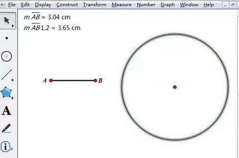 建立新计算。点击上方菜单栏“数据”菜单,在其下拉选项选择“计算”命令,在弹出的对话框用鼠标依次点击“度量的线段AB的长度、×、1.2”,然后点击确定,就得到了一个计算值。