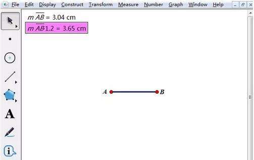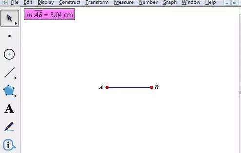 打开几何画板,选择左侧侧边栏“线段工具”在画板上任意画一条线段AB,并点击上方菜单栏“度量”菜单,在其下拉选项选择“长度”命令,度量出线段AB的长度。