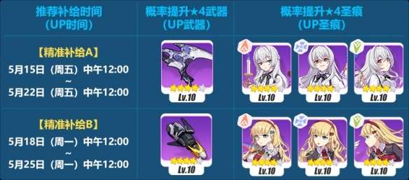 UP内武器出产率低于精准补给,但是UP内圣痕出产率远高于精准补给,有50连大保底机制,需要注意的是没有许愿。
