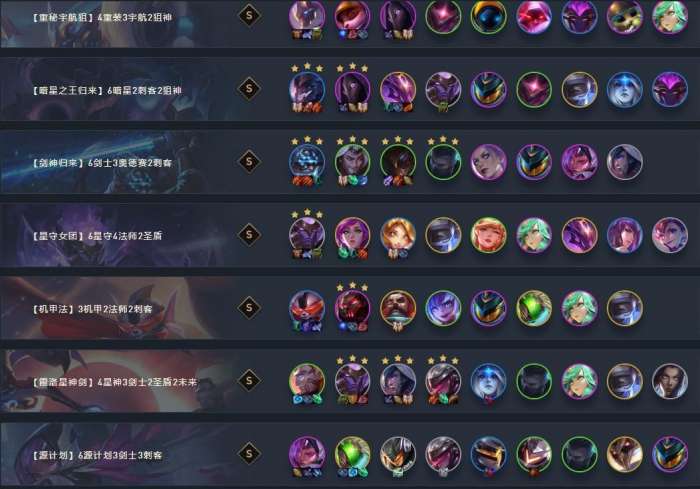 羁绊强度&羁绊变化:   强度前五名:4星神 4暗星, 4重装4狙神3宇航员, 4海盗3奥德赛, 4暗星, 4星神4圣盾3星守   变幅最大前五:银河魔装机神, 奥德赛/奥德赛剑士,斗枪