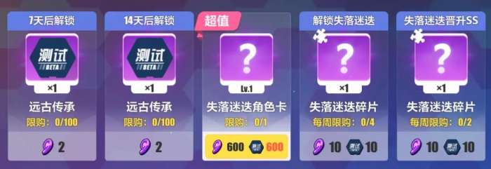 测试服的战场宝库中公开了失落迷迭的获取途径:600远古意志+600远古传承可以兑换整张角色卡,10意志+10传承可以购买1个角色碎片。