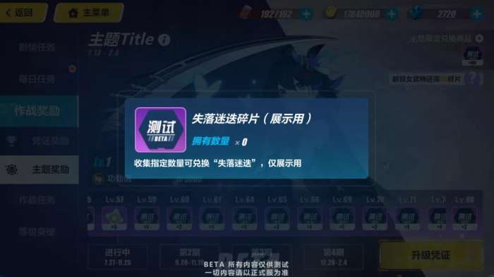 在花费礼包币升级凭证后,可以通过任务获取【功勋值】也能获得大量角色碎片。不过似乎必须要购买128档的精英凭证才能凑够等级拿满50个失落迷迭碎片。