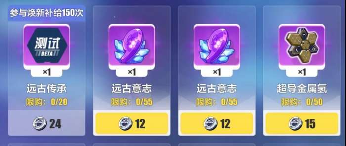 商店里则有远古传承、远古意志、金属氢、黑白核等重要材料,但远古传承和远古意志的限购数量是随着焕新补给抽数越多逐步解锁的。