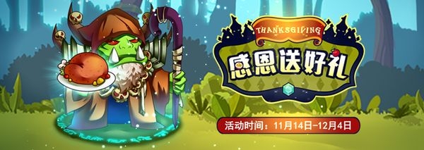 从11月14日至12月4日期间,玩家登录平台玩游戏,集“感恩大餐”,即可兑换称号、金币、木头等奖励。