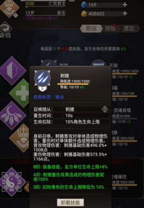 四转技能的话,亡灵君主肯定必点咯。注意下献祭的加成除了暗属性最重要的是血上限,血量加成。