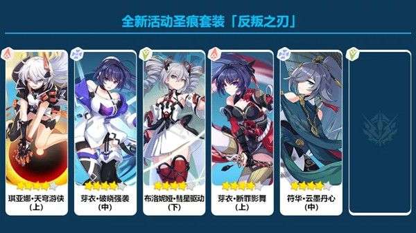 本次活动中可获取的活动奖励:初始4★圣痕「符华·云墨丹心(中)」属于活动圣痕套装「反叛之刃」: