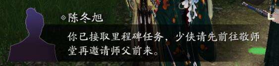 师徒二人前往东越桃源盛景寻找陈冬旭接取里程碑任务,在徒弟10000~18000之间最多可接取3次里程碑任务。