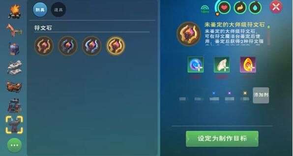 另一个重要道具符文石,可提升魔法伤害,也需要在魔法台制作获得,会用到一些新材料,像是符文魔晶、符文原石、符文晶珀等