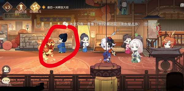 第二个缘分之火灯笼:君心似我心,具体位置是战斗1/3的蓝袍小男人。