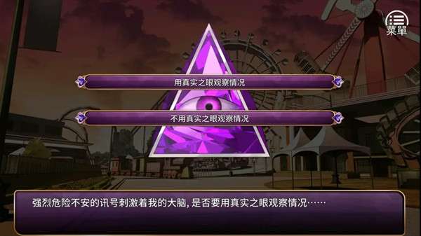 真结局打法:开局先去神秘道具屋,选择观察环境,得到真实之眼的购买途径,然后攒钱买下来。然后再次观察环境,得到去游乐场的线索。然后每天去游乐场游玩一次,一定次数后推动剧情发展,等到遇到蓝发少女选择离开,开启新地图教堂。然后就是每天晚上去一次教堂,第二次会告诉你要把银色匕首弄到手。第二天去游乐场游玩一次(还是几次,反正玩到会触发剧情即可),触发剧情,选择用真实之眼探查,然后逃跑,从道具屋老板手里得到匕首,回到教堂,完成仪式后推进剧情,然后选择杀死女主,真结局达成。(男主死亡×1)