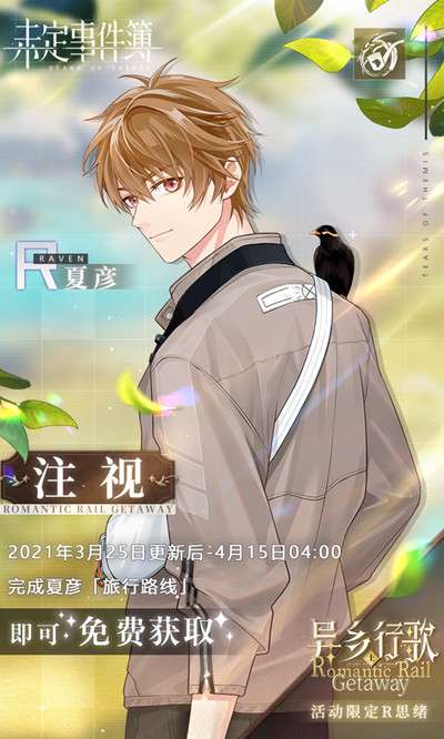 活动期间,完成「旅行日记」中的任务即可获得【未名币】、思绪技能升级素材等奖励;同时,当天完成对应「旅行路线」剧情后即可在活动界面触发旅途语音,每个男主共计10句旅途语音。