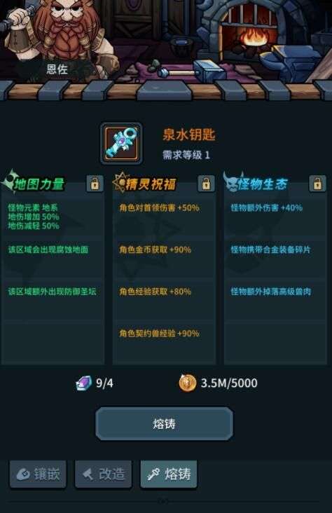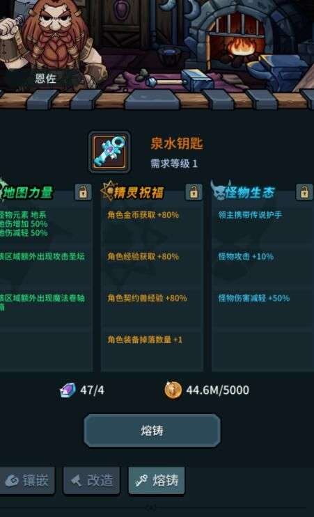 钥匙分为三个区域:地图力量,精灵祝福,怪物生态