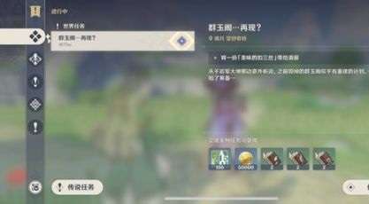 任务描述:从千岩军大坤那边意外听闻,之前毁掉的群玉阁似乎有重建的计划。一些小物件已经开始了筹备……玩家想要完成这个任务,就需要获得美味的扣三丝,但是许多玩家还不知道这个扣三丝的食谱是从哪里得到的。扣三丝的食谱在万民堂可以购买,去找璃月港右边传送点卖吃的卯师傅就行了。