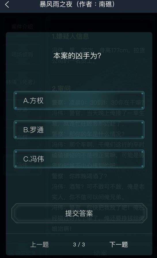犯罪大师暴风雨之夜答案