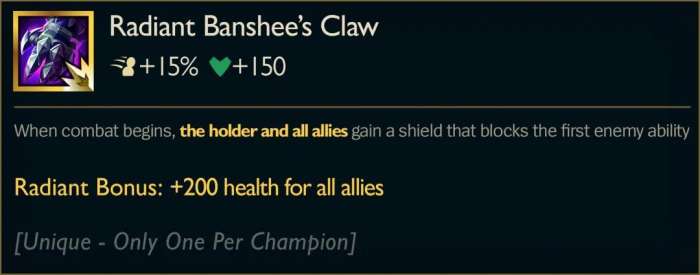 光明 女妖之爪,可以为全队提供一次技能格挡。